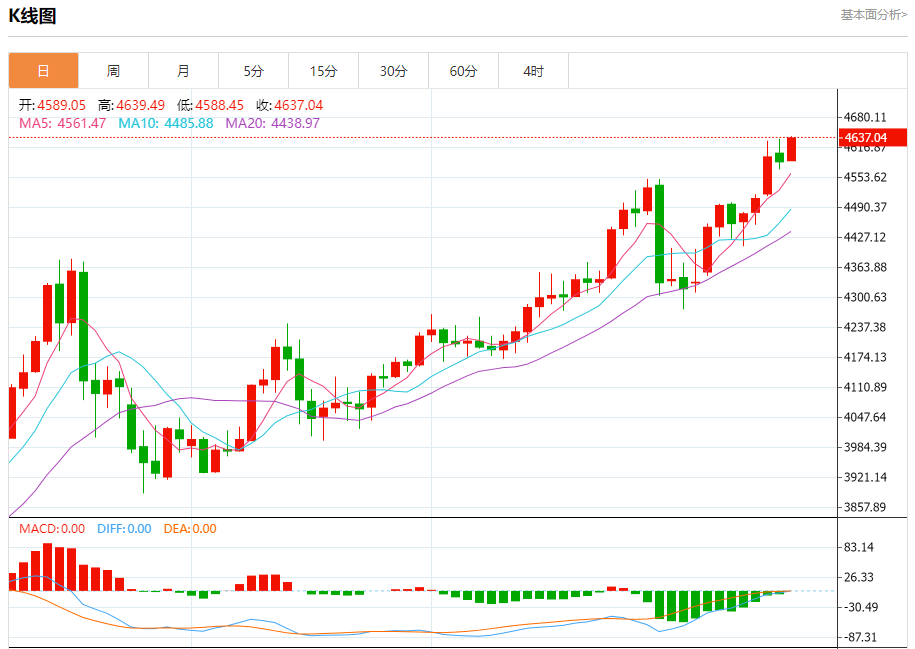 周三盘中,现货黄金报4636.79,涨幅1.10%。 今日分析:在4575之上,看涨,目标价位为4630,然后为4650。 技术点评:RI技术指标在50%中性区域下方,并向上反转。 支撑位:457545604530 阻力位:467046504630 (亚汇网编辑:冰凡)