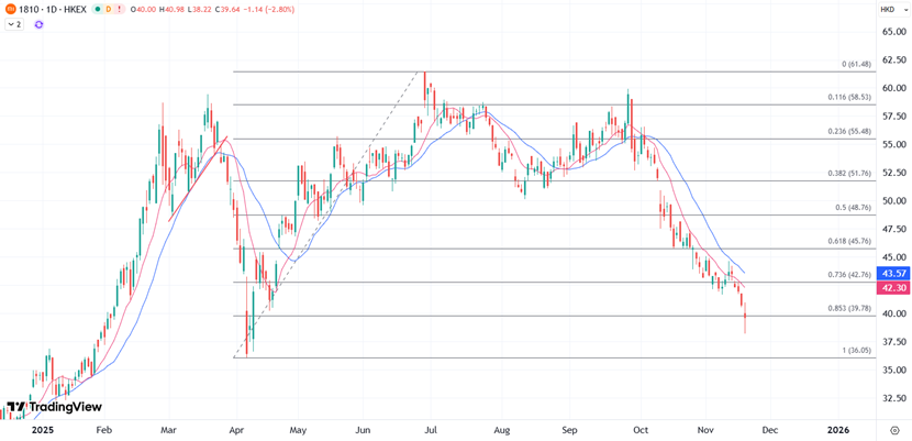 ATFX港股:电动汽车及AI首盈利,小米Q3净利超预期创新高 ATFX港股:小米集团(01810)昨日公布第三季度业绩,电动汽车及AI等创新业务首次实现单季经营盈利成为亮点,经调整净利润同比大增80.9%创新高,业绩整体超市场预期。不过今日小米股价低开低走,技术面处于尝试寻底的状态。 小米Q3实现总营收1,131亿元,同比增长