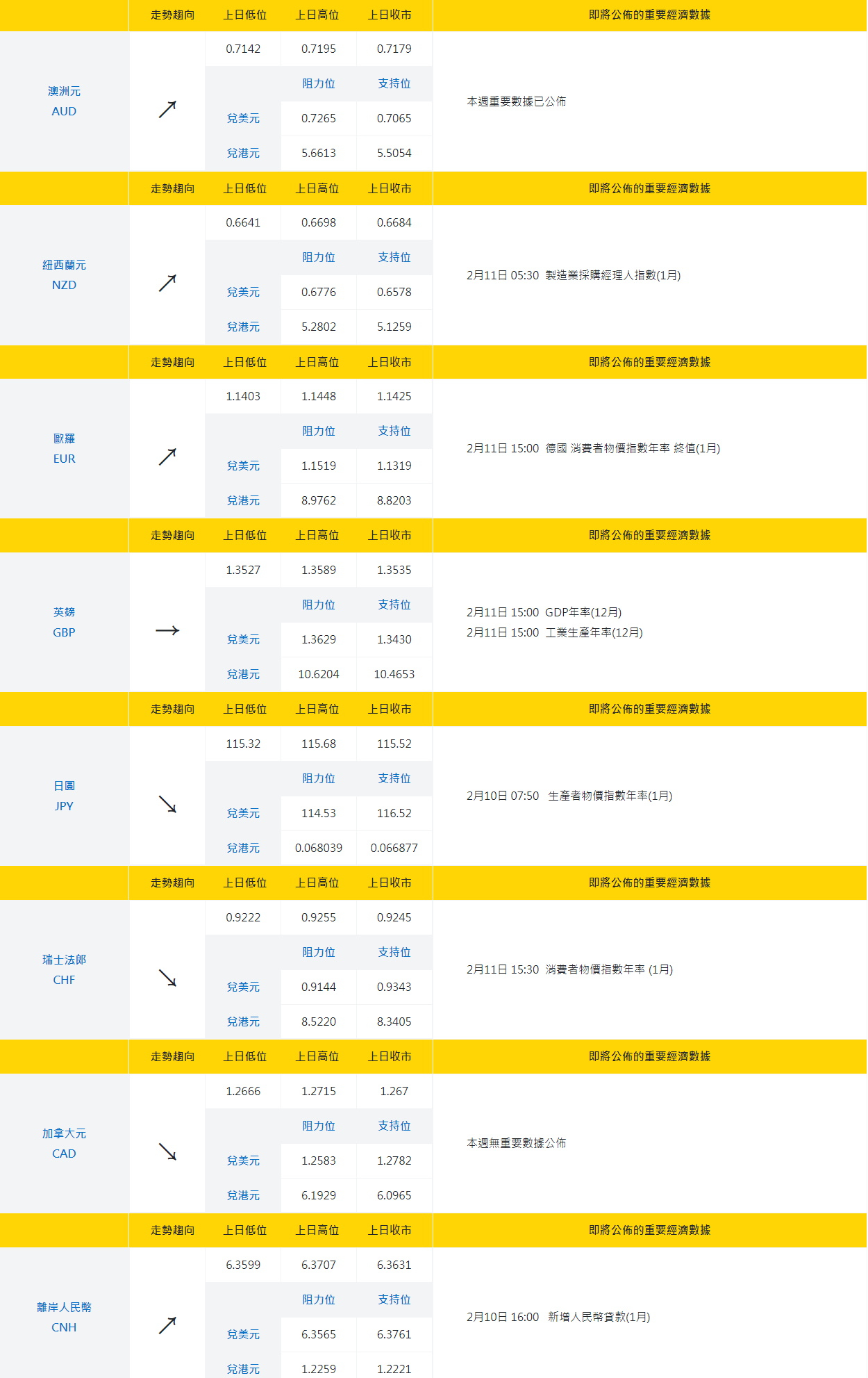| 即將公佈的重要經濟數據 | |||