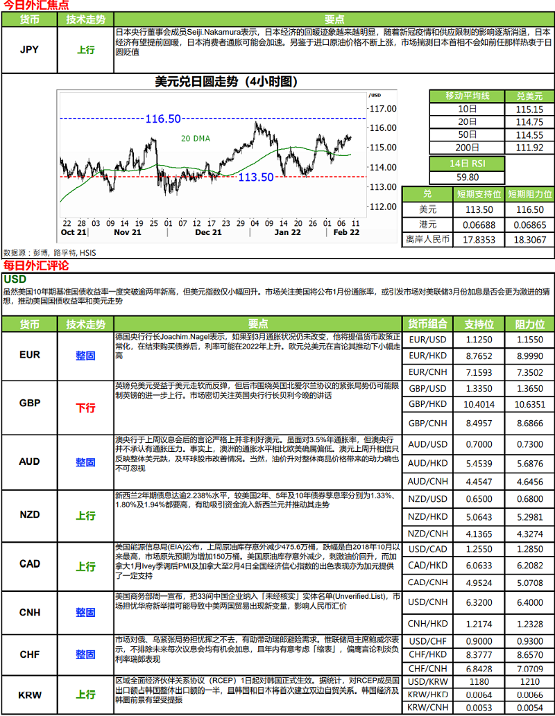 · 日央行审委中村豊明表示,日本企业究竟以多快速度将不断上涨的原材料成本转嫁给家庭消费者仍存不确定性,是经济面临的风险之一。但随着疫情影响及供应链受限制情况减弱,当地经济将有望持续复苏。日央行将维持其超宽松政策,以确保经济实力,且足以使通胀率加速达到 2%的目标。