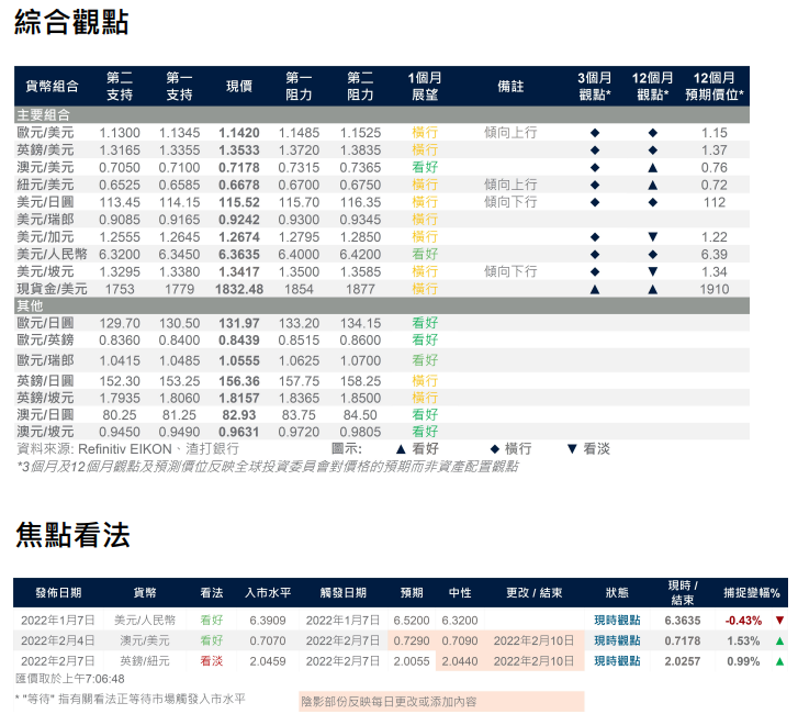 澳元兑美元曾升穿0.7175并走向 0.72,其升势亦似乎完好无损。宏观来看,汇价仍处区间活动,但料有力测试关键阻力 0.7315 - 65.我们正降低我们的目标水平,同时提高我们看好观点的中性水平以保护收益。我们看淡英镑兑纽元的观点亦运作良好,我们亦收紧了对该汇价观点的中性水平以管理风险,但我们预计汇价将继续跌至接近 2.00.