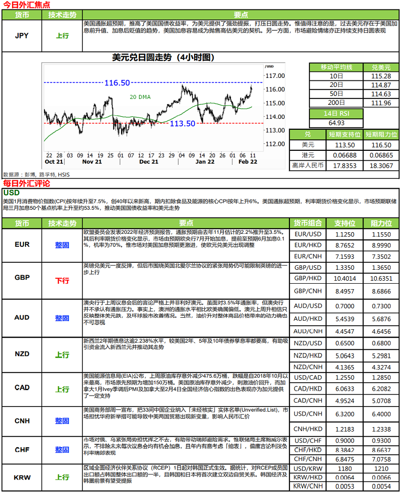 · 美国圣路易联储银行行长布拉德于接受《彭博》访问时表示,1 月份消费物价指数反映美国仍然有通胀压力,联储局需要远较目前灵活,以及作出更大反应。并指将支持于 7 月前合共加息 100 基点,以及于次季起缩减资产负债规模。但对于下个月是否应该加息半厘,则未有决定。布拉德本年具有货币政策投票权,言论重燃市场对联储局或需更大幅度加息的担忧。