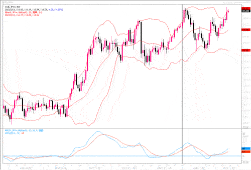 周四日本央行表示,将以0.25%的收益率无限量购买10年期公债,突显其防止全球收益率上升过度推高国内借款成本的决心。日本央行在日本债市收盘后在其网站上发布的声明中说,购买行动将于周一进行。该消息利空日元,同时1月美国CPI数据公布以及相关鹰派言论推动美元/日元进一步上行。当天,美元/日元走强,开盘115.49,收盘116。