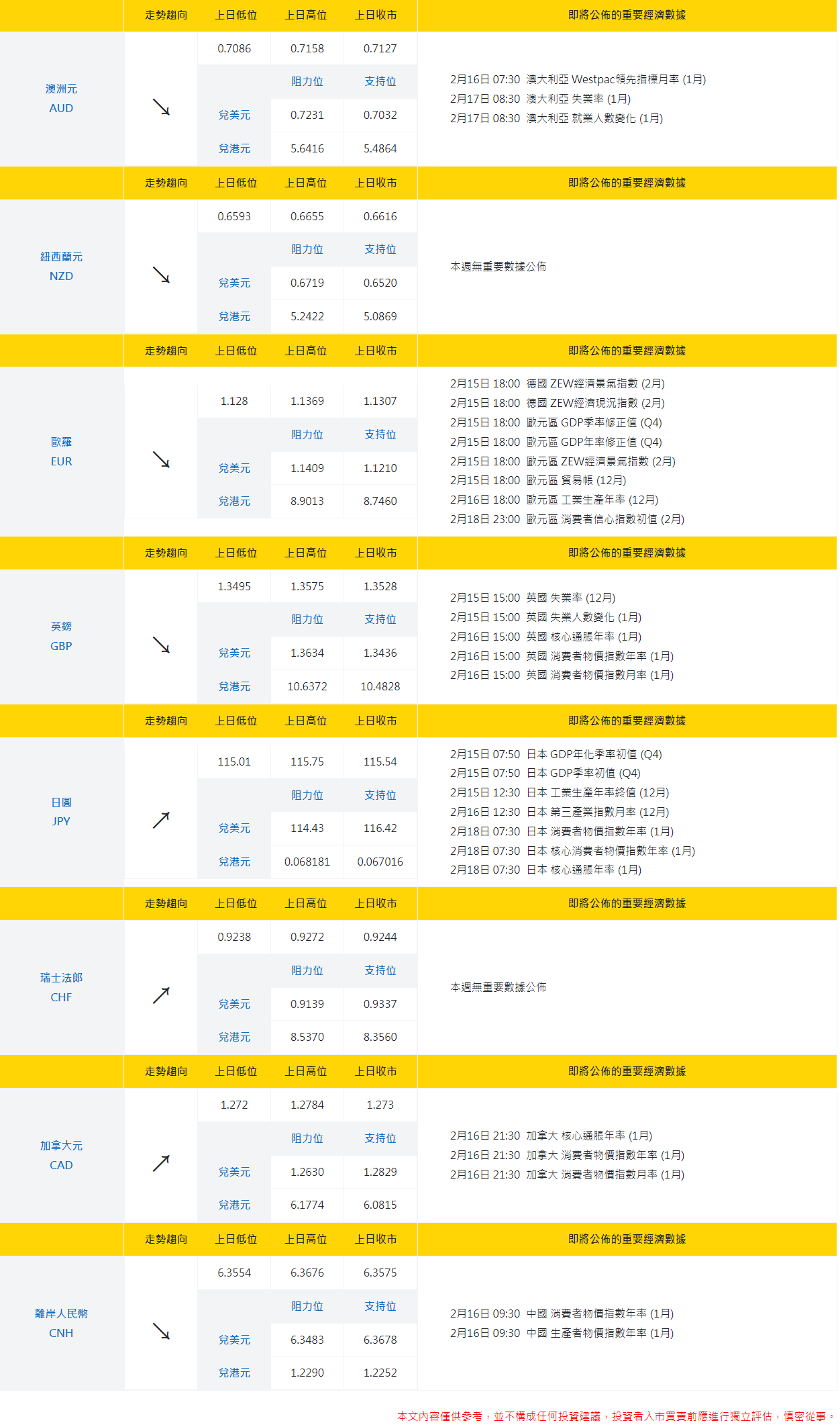 21:30 美國 生產者物價指數月率 (1月) 2月16日 21:30 美國 零售銷售月率 (1月) 2月16日 22:15 美國 工業生產年率 (1月) 2月17日 03:00 美國 美聯儲會議紀要 2月17日 21:30 美國 初請失業金人數 (12/2月) 2月17日 21:30 美國 續請失業金人數 (05/2月) 2月17日 21:30 美國 費城聯儲製造業指數 (2月) 2月18日 23:00 美國 CB領先指數月率 (1月) |