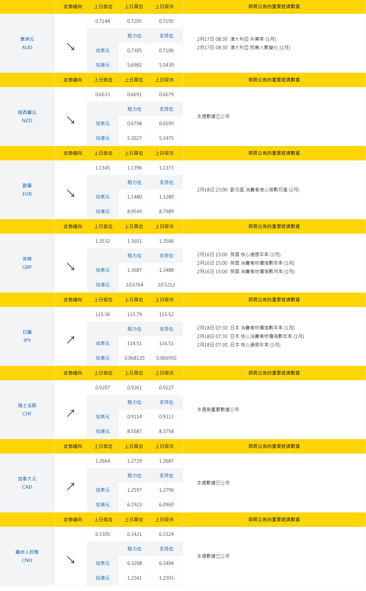 03:00 美國 美聯儲會議紀要 2月17日 21:30 美國 初請失業金人數 (12/2月) 2月17日 21:30 美國 續請失業金人數 (05/2月) 2月17日 21:30 美國 費城聯儲製造業指數 (2月) 2月18日 23:00 美國 CB領先指數月率 (1月) |