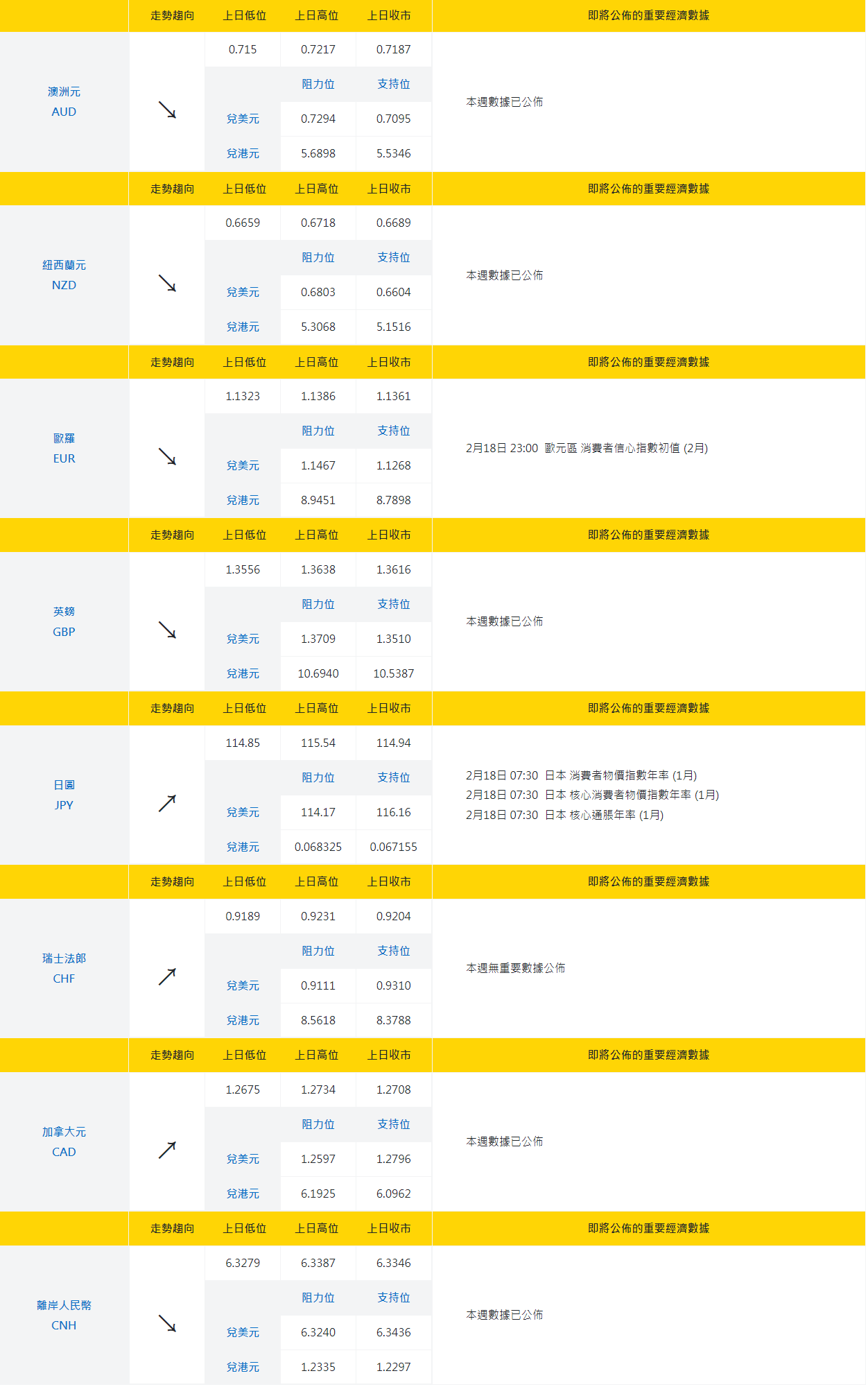 | 美國 | 2月18日 23:00 美國 CB領先指數月率 (1月) | ||