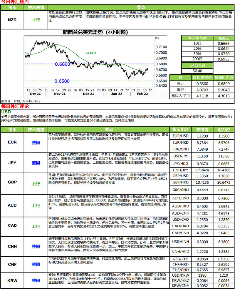 · 本周三(23 日) 新西兰央行将议息。加息 25 个基点,把其官方息率推上 1 厘是意料中事。面对去年第四季年通胀率高企 5.9%,创逾 31 年来高位,加上炽热楼价,按年升两成以上。市场关注新西兰央行会否暗示日后进一步加息。