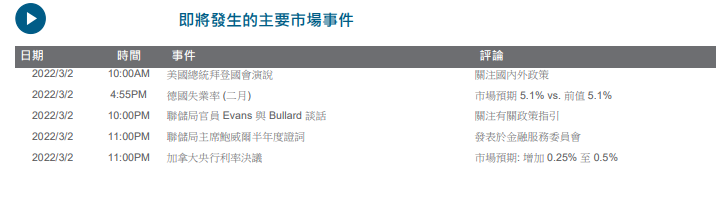 政策不确定性正在上升,澳洲央行昨日谈到有关地缘政治压力升温,同时维持政策稳定。加拿大央行今日将开会,而美国联储局主席鲍威尔於明日将作证词。全球政策指引恐因地缘政治事件更敏感,而不仅是针对经济数据反应。