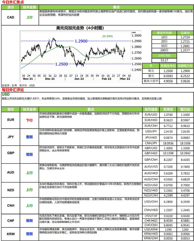 · 本周市场焦点离不开周四。当天有欧央行议息会及美国公布 2 月通胀率(CPI) .在俄乌事件未爆发前,市场一直估计欧央行将在是次议息会宣布收紧货币政策的安排。但按现在情况观察,料欧央行将再难作收紧。但仍值得关注是,欧央行将如何看现今的俄乌局势对区内经济影响。至于美国 2 月份年通胀率,市场估计将由 1 月的 40 年高位 7.5%,进一步攀至 7.8%.如属实,将反映出联储局在加息步伐上明显落后于通胀。