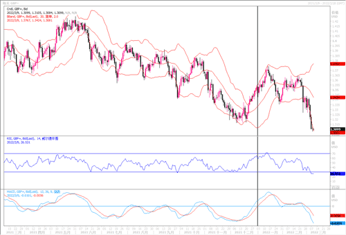 周二,风险偏好情绪有所改善,欧元兑美元扭转了最近的弱势,重新夺回了1.0900。欧元区2021年第四季度季调后就业人数终值同比升2.2%,预期升2.1%,初值升2.1%;环比升0.5%,预期升0.5%,初值升0.5%。欧元区2021年第四季度GDP终值同比升4.6%,预期升4.6%,初值升4.6%;环比升0.3%,预期升0.3%,初值升0.3%。数据情况在一定程度上给予了欧元支撑。但是俄乌冲突引发石油和天然气价格飙升,令能源进口经济体面临可能是自1970年代以来最严重的滞胀冲击威胁,一些经济学家甚至认为欧洲经济有衰退之虞,投资者对欧洲市场今年复苏的押注也被颠覆。因此,欧元昨日之反弹暂时只可视为技术上的调整。从4小时图上观察,欧元汇价目前勉强附着在20日均线附近,MACD技术信号线底部金叉,红色动能柱向上发散,RSI进入50线附近,显示一定的反弹动能。上方阻力将落在1.10附近,若能穿破,上方反弹空间将会进一步拓展;若遇阻回落,则谨慎提放滑落更低水位。