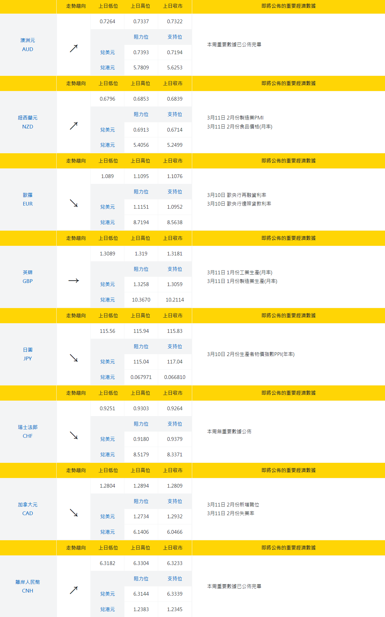 2月份消費者物價指數CPI(年率) 3月10日 一週初請失業金人數(3月5日當週) 3月11日 3月份密歇根大學消費者信心指數初值 |