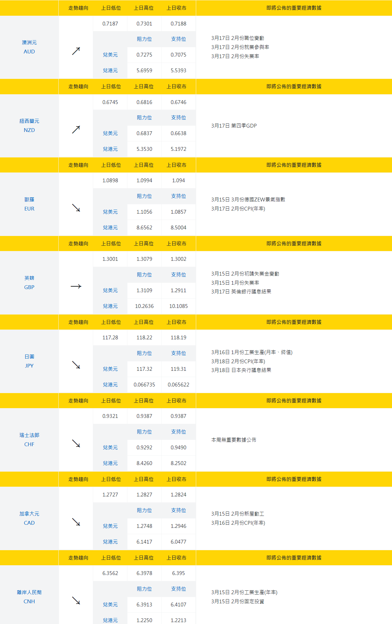 3月份紐約州製造業指數 3月16日 2月份零售銷售初值(月率) 3月17日 聯儲局議息結果 3月17日 2月份新屋動工 3月17日 3月12日當週一週初請失業金人數 3月17日 2月份工業生產 3月18日 2月份成屋銷售 3月18日 2月份領先指標 |