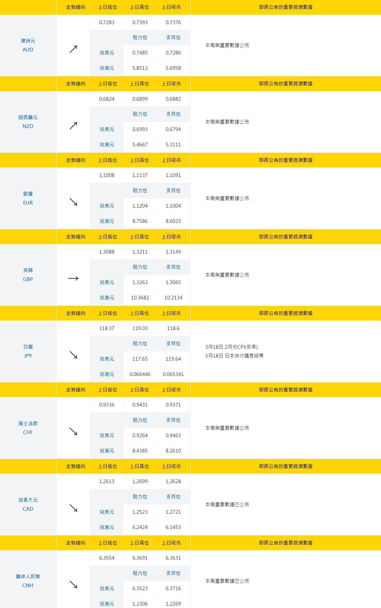 | 美國 | 3月12日當週一週初請失業金人數 | 21.4萬人 | 22.9萬人 |