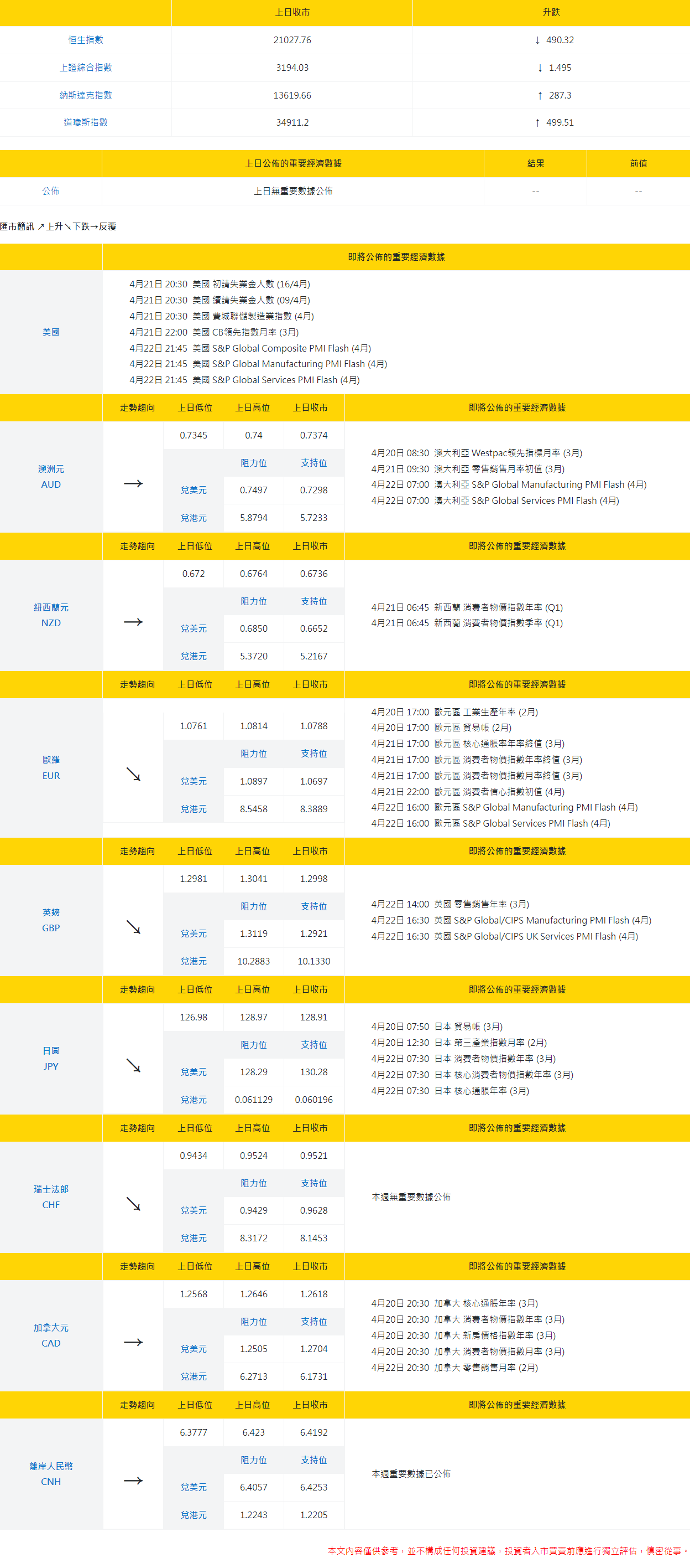 大丰银行:今日外汇走势分析和投资策略(2022年4月20日)