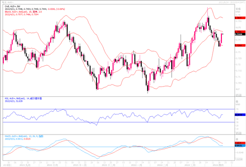周三(4月20日)澳大利亚储备银行,通过其4月的会议纪要,发出了一个鹰派的信息,并提供了一个强有力的暗示,加息将比预期更快。澳大利亚央行说,通货膨胀的加速和工资增长的加快使得2010年以来首次加息的可能时间提前。这反过来又对澳元起到了推波助澜的作用,加上美元的全面疲软,帮助澳元/美元在周三获得了强劲的正面动能。但是在预期美联储会更积极收紧政策的情况下,多头能否延续涨势仍有待观察。日图显示,澳元兑美元在关键支持0.7350附近企稳,该支持既位于2021年初以来下行趋势线(已经被上破,现充当支持),也位于今年1月份以来上行趋势线附近。所以澳元兑美元自0.7350开始的反弹可能是0.7661以来这波回落走势结束的标志,汇价可能恢复1月份以来上行趋势。若符合预期,澳元兑美元继续上行初步阻力关注20日均线0.7470,进一步往上再次关注0.7550-0.7600区域阻力。而若回落,初步支持在0.7400,往下再次关注0.7350附近支持。