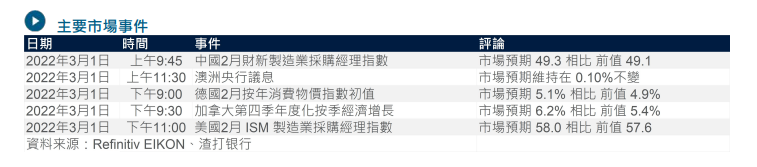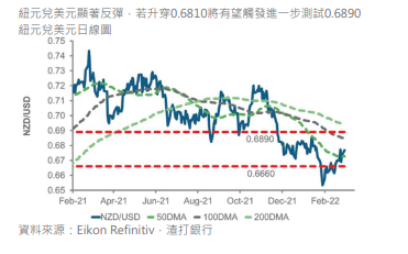 我们预计澳洲储备银行今天会议不会有重大变化,它是自乌克兰被入侵後首间十国集团央行举行货币政策会议。但澳元兑美元在临近0.7285 和 0.7330 之间的阻力区仍然展现动力,若央行意外地取态鹰派可能会触发空仓回补,从而推动测试阻力水平。我们继续看好澳元。