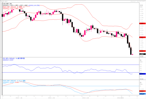 在周二(4月26日)的外汇市场上,英镑兑美元加速下跌,盘中也是以当日最低价格1.2560收盘,全日跌幅达1.30%。经济衰退的乌云现在开始笼罩着许多发达国家,而英国的风险看起来比多数国家更大。此前,国际货币基金组织警告称英国的通胀冲击可能是“两个世界中最糟的”,因为它既面临美国那样的劳动力市场紧张,也面临欧洲一样的能源危机。从采购经理指数(PMI)到消费者信心指数在内的一系列数据都说明经济复苏步履蹒跚。英国脱欧使得英国特别容易受到全球通胀的冲击。糟糕的贸易表现似乎在英国具有“更大的持久性”,而来自欧盟国家的劳动力供应下降正在加剧工资压力。而英国政府可能过快收紧财政政策,或会重演全球金融危机后的错误。英国央行行长安德鲁?贝利已经承认,利率决策者必须在解决通胀和可能引发经济衰退之间走一条艰难道路。为此,近期英镑兑美元表现可说是十分糟糕。期权交易员也变得更加看跌英镑,对英镑未来几个月下跌的押注增加。目前论小时还是日线图上,英镑颓势极盛。周线级别图上看,下方已无强势的支撑位置,若隔夜低点1.2560-1.2500区域也不保,则下方将考验2020年曾到达过的低位区域1.23附近。