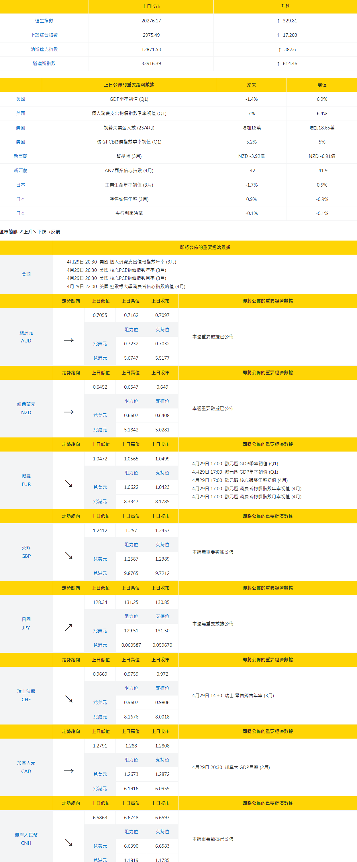 大丰银行:今日外汇走势分析和投资策略(2022年4月29日)