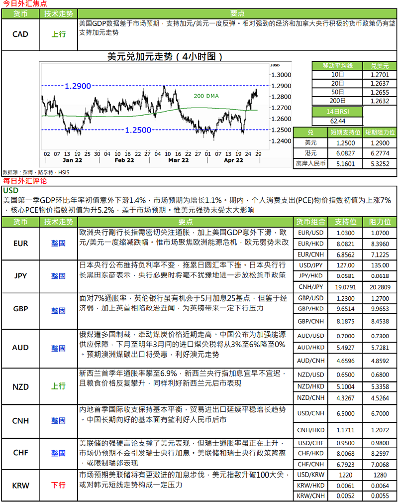 · 日央行于周四(28 日)议息会后,如预期维持所有货币政策不变,息率保持于-0.1%水平,及 10 年债息在 0.25%或以下。日央行行长黑田东彦指,会继续保持庞大宽松货币政策以支撑经济。另外,黑田更明确指,要借助是次议息会的机会,向外澄清该行对继续维持宽松货币政策的意向。消息一出,日圆汇价随即跌穿 130 兑 1 美元的重要支持。