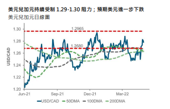 若下周二澳洲央行比预期更加鹰派,澳元兑美元可能会进一步走高。美元兑加元再次受制 1.29-1.30 阻力,我们预期汇价可能会进一步下行至 1.2630-80.欧元兑美元仍疲弱,不过我们观察到 1.0070-1.0110 可望在汇价波动下挫时提供较强的长线支持,而汇价相信要突破 1.0750 才有机会作出更强劲的反弹。