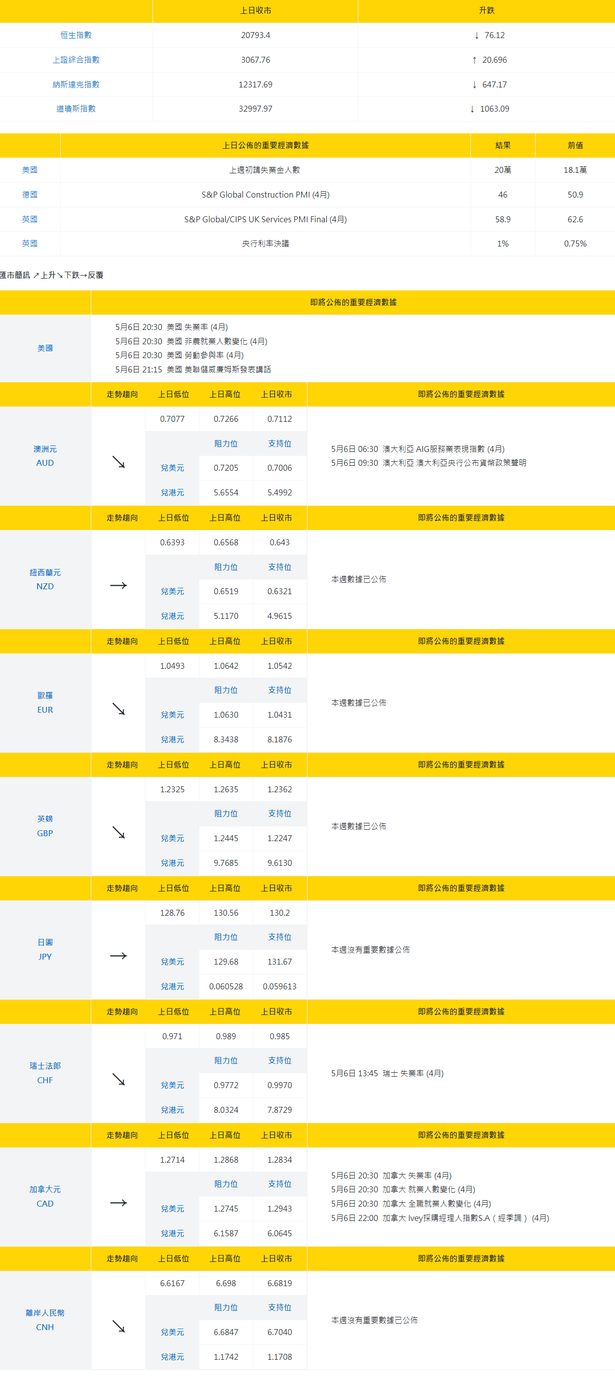 大丰银行:今日外汇走势分析和投资策略(2022年5月6日)