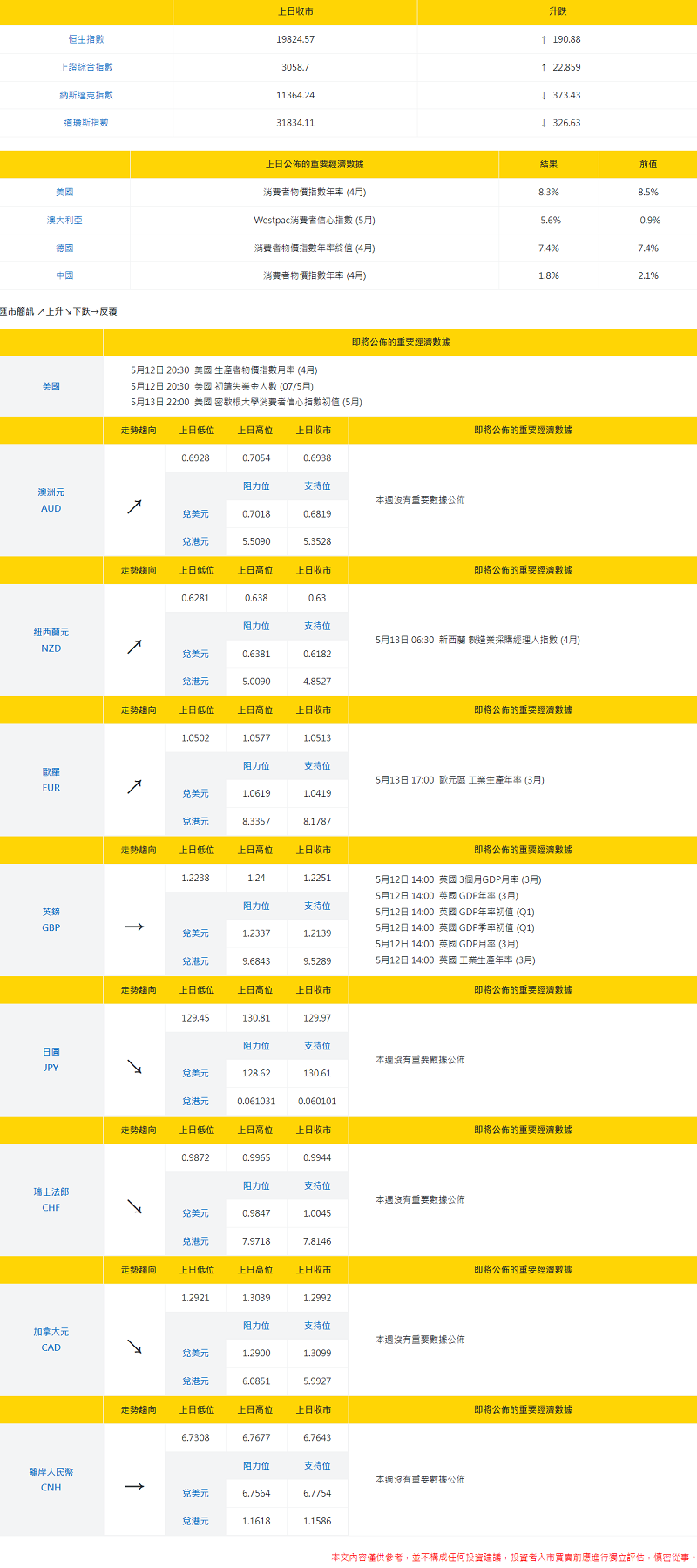 大丰银行:今日外汇走势分析和投资策略(2022年5月12日)