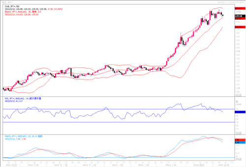 今年以来,日元兑美元汇率经历了自由落体式的下跌,然而最近,随着华尔街开始出现一些对日元的看多评论,日元遭受的无情抛售似乎已接近尾声。高盛和加拿大丰业银行均发表了温和看多日元的研报,这是华尔街机构近期少有的观点。两家机构均认为日元已经一定程度上超跌,同时,高盛认为日元作为避险货币,可以看作一种理想的经济衰退对冲工具,存在配置价值。日图在前高131.24附近有受阻迹象,但维持在20日均线上方则整体上行势头未改。4小时图波动有限,短线回调力度不大。小时图维持已跌穿130.00支撑,显示一定的空头欲望,下方若进一步压穿布林带中轨水位129.00,则美日的回调幅度将会加大。
