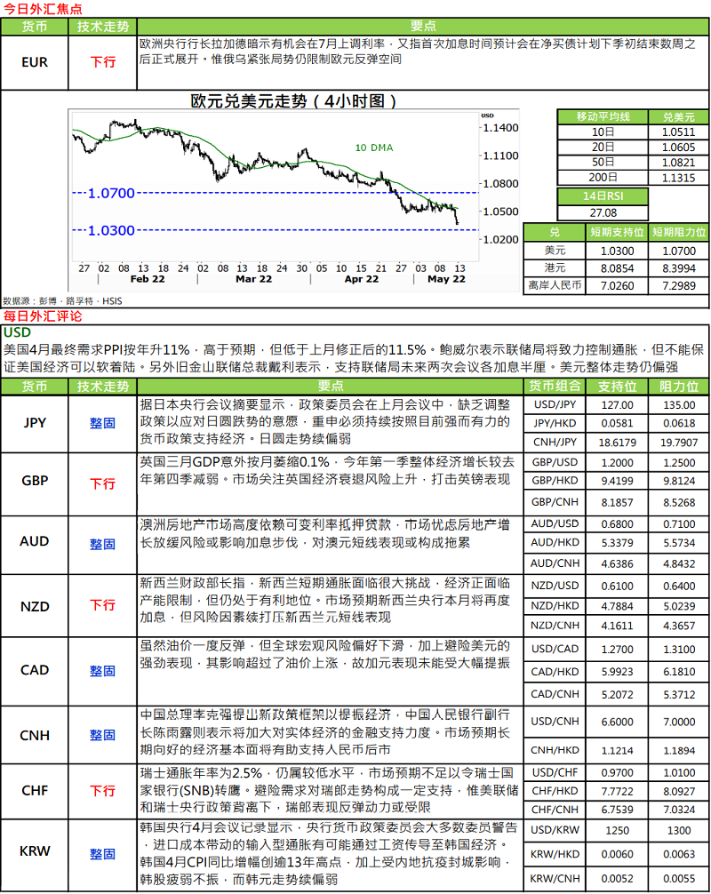 · 美国上周新申领失业金人数续回升至 20. 3 万,较前值增加 1 千人,重回 2 月中以来高位,且高于市场预期的 19.5 万。期内,持续申领失业金人数续减少 4.4 万至 134.3 万,为连降第六个星期,且续创近 52 年以来低位,市场原先预期为 138.7 万。数据反映美国就业市场强劲复苏趋势持续,暂未受联储局收紧货币政策所影响。