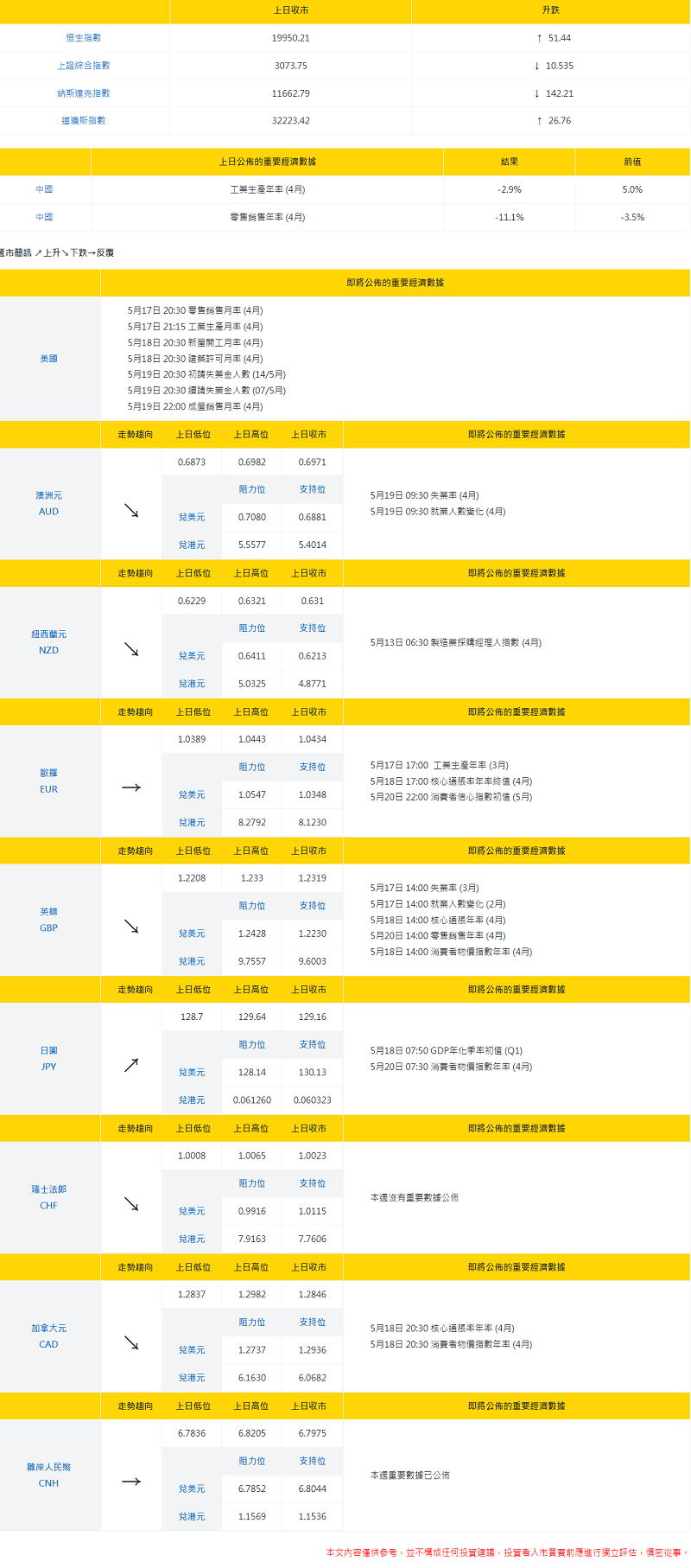 大丰银行:今日外汇走势分析和投资策略(2022年5月17日)