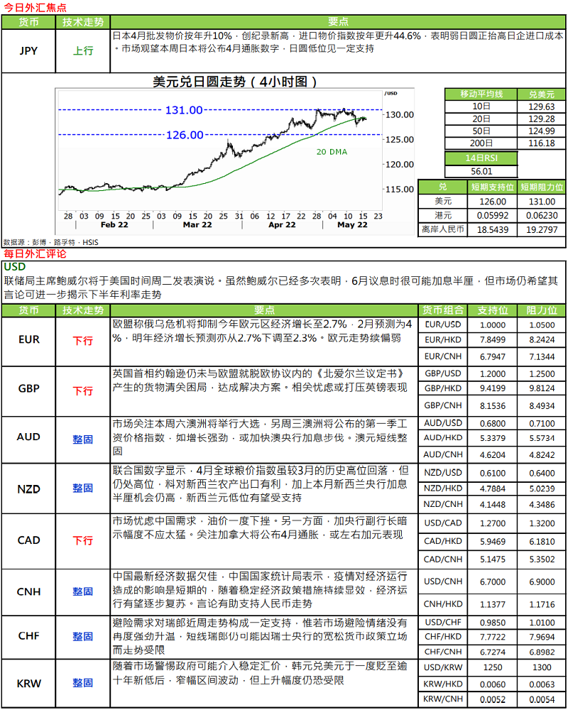 · 国家统计局公布,内地 4 月零售销售按年跌幅显著扩大至 11.1%,是近两年以来最大跌幅,且远低于市场预期的下跌 6.6%.同期,内地工业生产按年亦转跌 2.9%,跌幅亦是近两年以来最大,市场原先预期为上升 0.5%,其中,汽车制造业增加值按年大跌 31.8%.至于固定资产投资按月亦转跌0.82%.内地经济的「三头马车」即投资、工业生产及零售销售均见疲弱,反映受国际环境更趋复杂严峻,以及疫情封控措施影响,正增加内地经济增长放缓压力。不过,国统局指出,随着内地疫情得到有效控制,以及一系列刺激政策浮现,内地经济情况将有望得到改善。