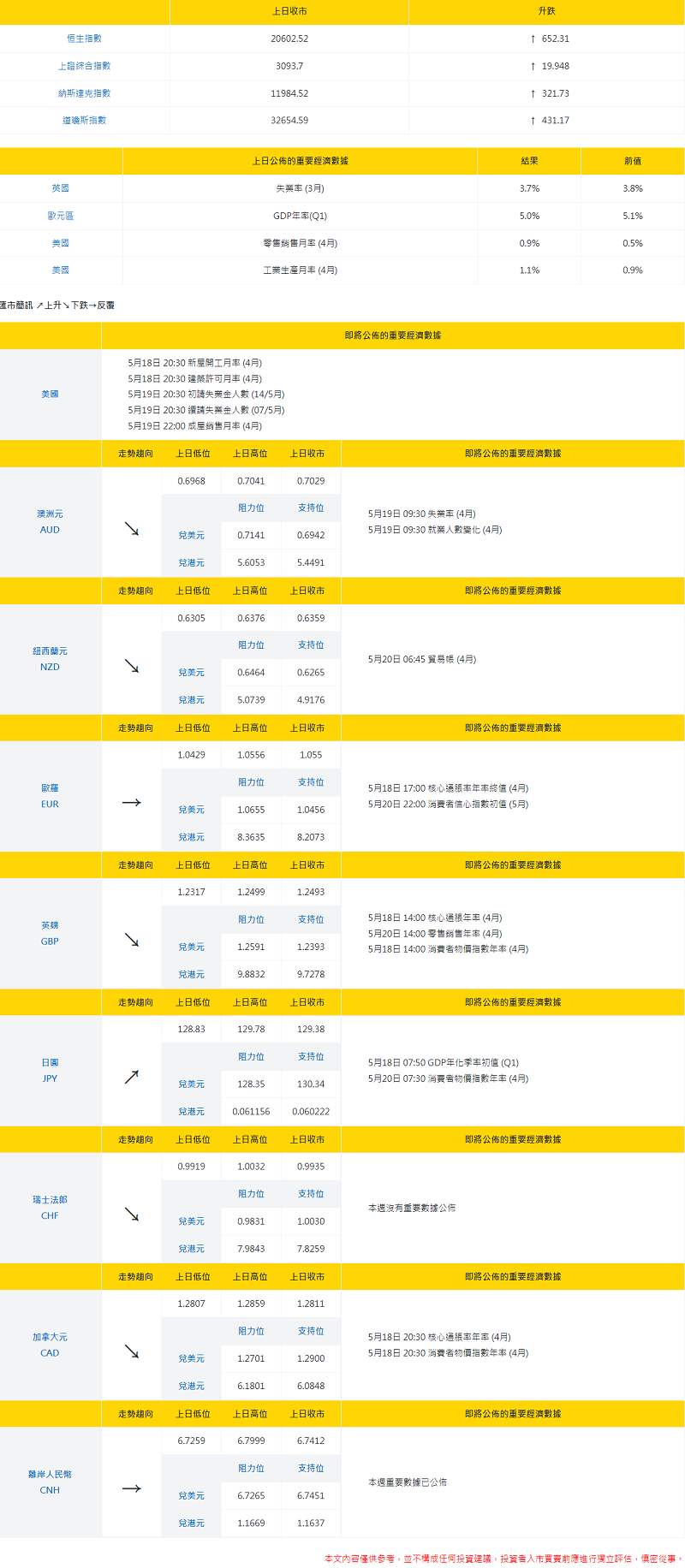 大丰银行:今日外汇走势分析和投资策略(2022年5月18日)