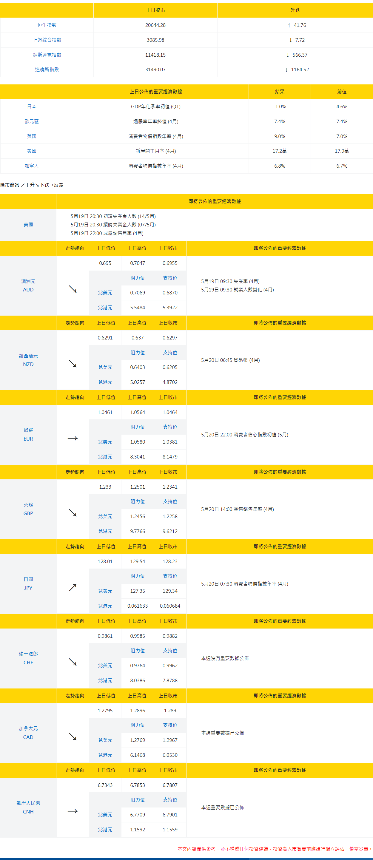 大丰银行:今日外汇走势分析和投资策略(2022年5月19日)