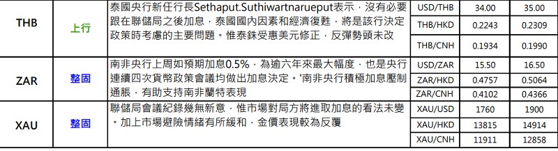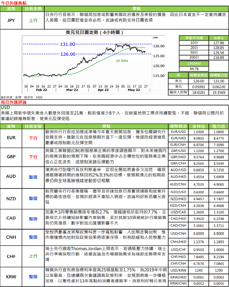 · 美国上周新申领失业金人数续回落至 21 万,较前值减少 8 千人,高于市场预期的 21.5 万。期内,持续申领失业金人数回升 3.1 万至 134.6 万,为近七个星期以来首见回升,但仍是近 52 年以来低位,市场原先预期为 131 万。数据反映美国就业市场强劲复苏趋势持续,暂未受联储局收紧货币政策所影响。