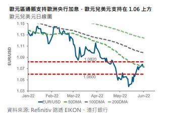 我们认为在 1.0785 和 1.0820 之间的阻力区仍是欧元走强的关键技术障碍,目前支持在 1.06 附近。