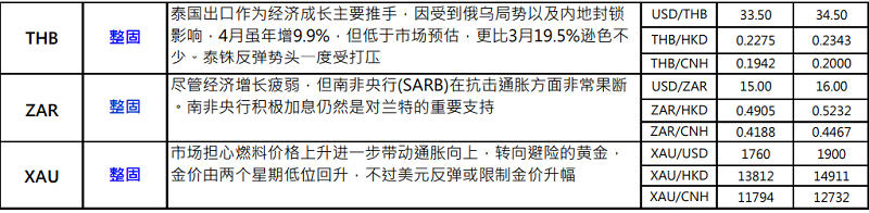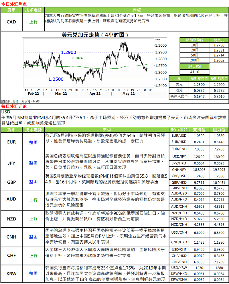 · 加拿大央行于昨晚的议息会议后,一如市场预期,宣布加息 50 个基点至 1.5%,是年内第三次加息。央行声明指,由于经济需求过剩,且通胀持续大幅高于目标。鉴于高通胀变得根深蒂固的风险已经上升,故判断利率将需要进一步上调。而于目前政策利率仍是主要政策工具,至于量化紧缩则为辅助工具。加央行虽暗示未来需要进一步加息以遏制通胀,且见 1.5%的利率已成为七大货币中的第二高,紧次于新西兰元,料有助加元于是次央行加息潮中维持一定竞争力。