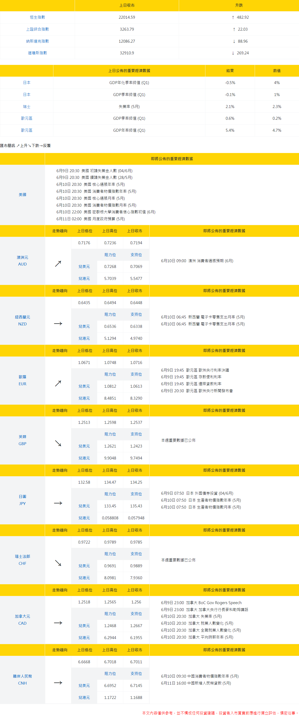 大丰银行:今日外汇走势分析和投资策略(2022年6月9日)