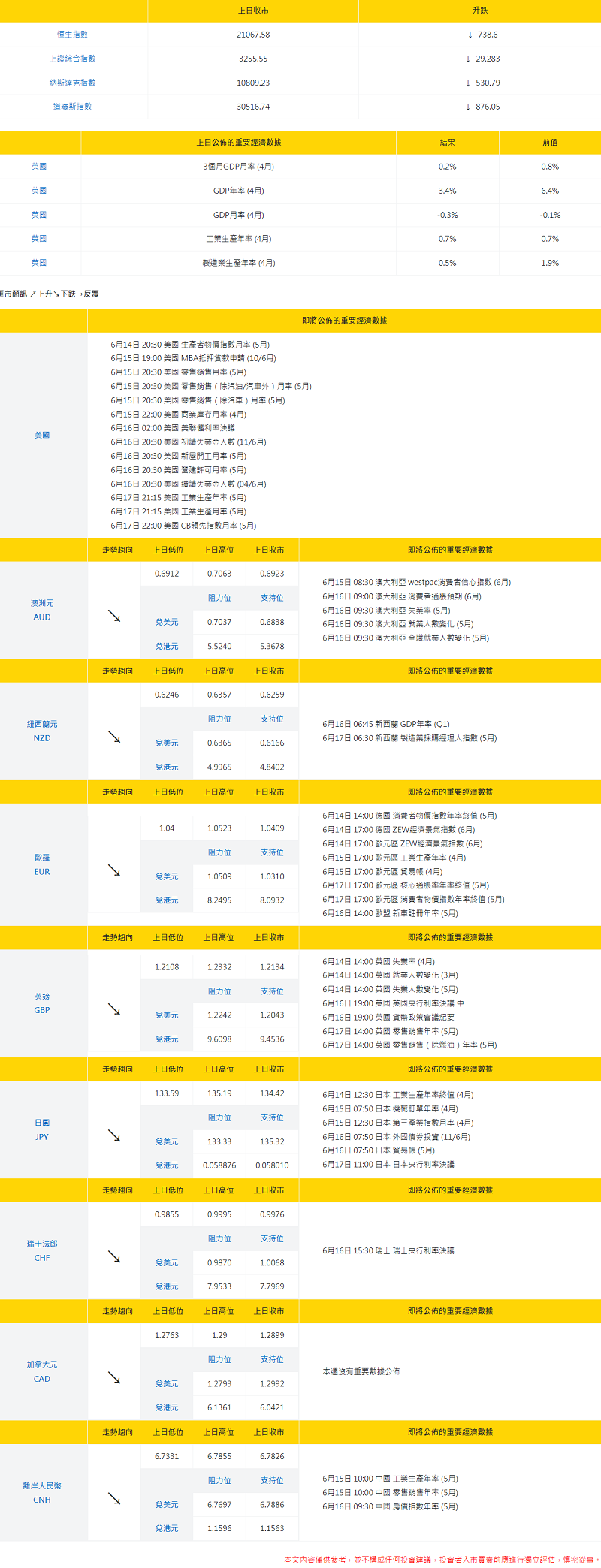大丰银行:今日外汇走势分析和投资策略(2022年6月14日)