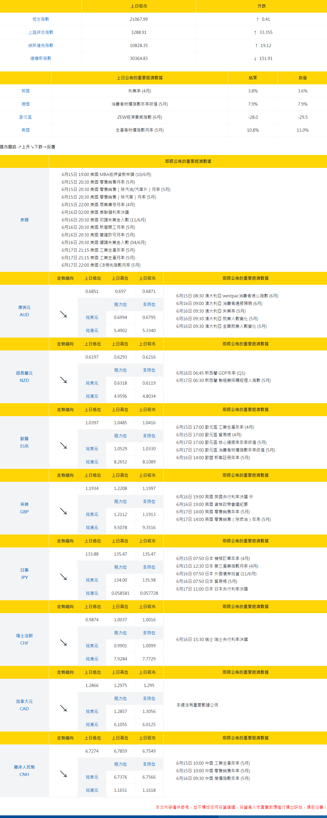 大丰银行:今日外汇走势分析和投资策略(2022年6月15日)