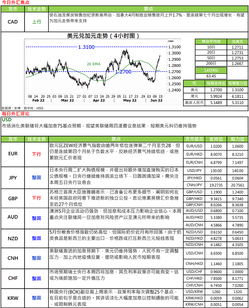 · 德国 6 月 ZEW 经济景气指数续回升至负 28,优于市场预期的负 27.5,前值为负 34.3,但仍是连续第四个月处于负数水平。期内,当前现况指数续回升负 27.6,优于市场预期的负 31 及前月的负36.5.数据反映内地疫情见缓和及俄乌危机未见恶化等,均增强市场对德国经济前景信心。同期,欧元区 ZEW 经济景气指数由逾两年低位连弹第二个月至负 28,前值为负 29.5.至于经济现况指数由前值负 35,改善至负 26.4.