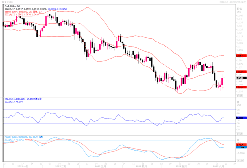 在周四(6月16日)外汇市场上,欧元兑美元继续反弹,日内涨幅达1.53%,盘中最高抵近至1.06。欧洲央行行长拉加德告诉欧元区财长,如果欧元区较弱国家的借款成本增长过多或过快,那么央行新的危机工具就将启动。其说话旨在缩小欧元区债券息差。一位欧洲央行官员表示,央行必须解决割裂的问题,从而确保货币政策能够在整个欧元区有效传导,同时投资者不应当怀疑决策者履行维持物价稳定使命的决心。欧央行上下官员的表态,进一步明确欧央行十多年来行将开启首次的加息旅程。欧元昨日继续大幅反弹,日线报收上下影线大阳线,收盘重新企立1.05之上,显示反弹力度有所加强。从4小时图来看,MACD虽仍处零轴下方,但红色动能柱有所发散,汇价也充分穿越短期均线上方,显示近期欧元兑美元在历史阶段的低位区域整固反弹的一定欲求。然而,整体上欧元兑美元仍受压布林带中轨线1.0620水平之下,若近期欧美冲不上去,则仍要小心防范其延续下行的势头,下方强硬的支撑还是在近期到过的低位1.0350。