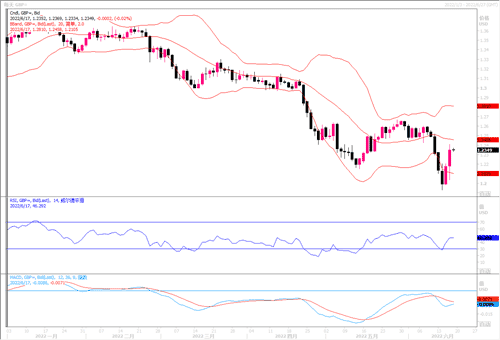 周四(6月16日)英镑兑美元继续大幅反弹,全日涨幅达到1.82%,盘中英镑兑美元报价曾突破1.2400水位。英国央行昨日宣布加息25个基点,虽然给投资者感觉这种加息幅度无助于缓解飙升的通胀以及生活成本危机将在未来几个月进一步加剧的担忧,但至少证明英央行还是在按自己的节奏有序的进行货币收紧之中。为此,英镑也从加息消息出来一刻的下跌转而发力反弹。从技术图形上看,小时以及4小时图上,英镑兑美元回越20周期均线上方,MACD开始穿越零轴,显示一定的反弹动能。但日线图上,MACD则仍处零轴下方,汇价也受压在布林带中轨线下方。上方初步阻力在1.2415附近,进一步在1.2485,若汇价在上述阻力水平遭压,则英镑的颓势难以逆转。