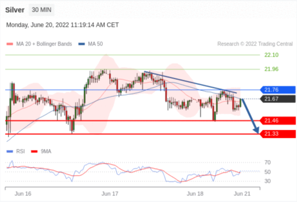 技术点评: 只要依旧存在21.76阻力位,价格波动存在看跌的趋势。