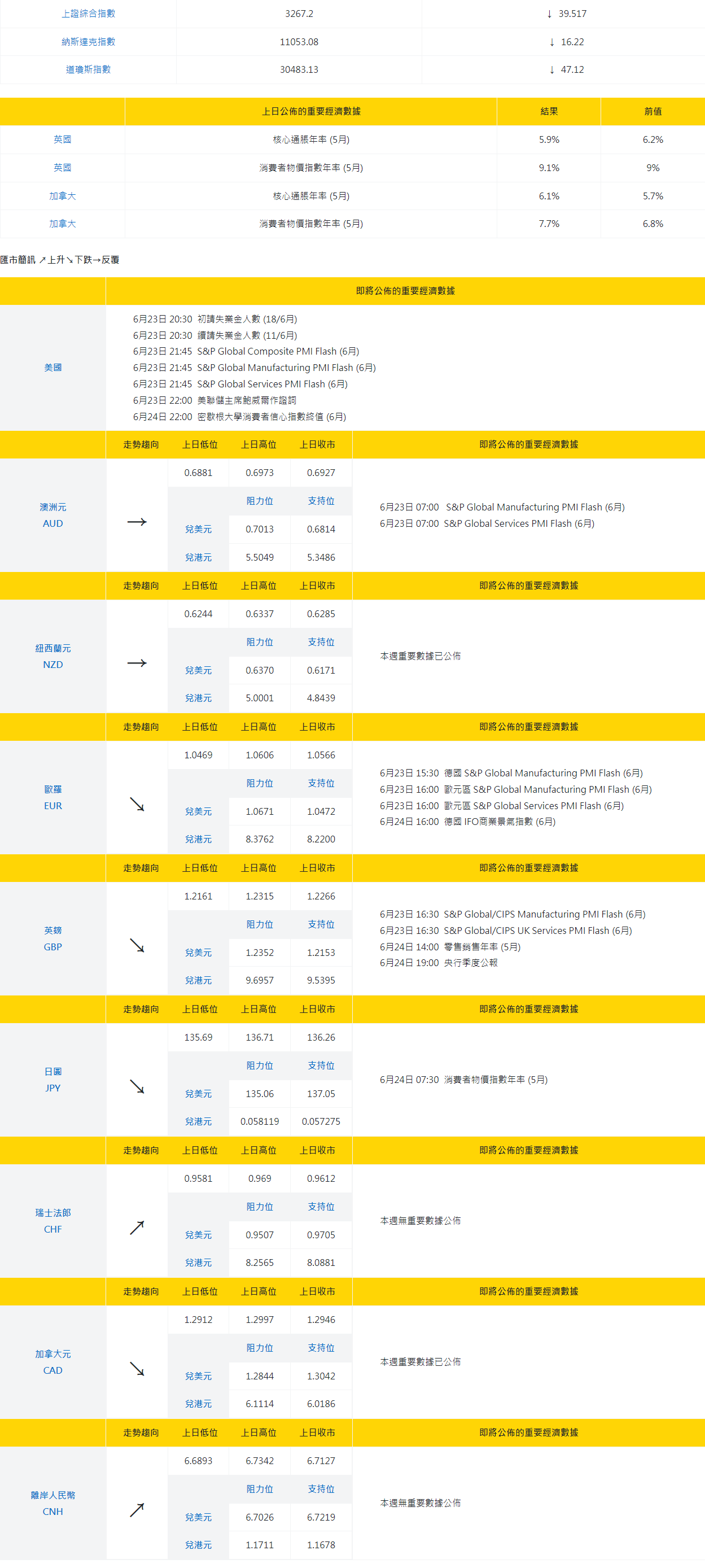 大丰银行:今日外汇走势分析和投资策略(2022年6月23日)