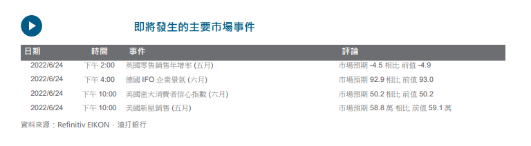 由於美联储主席鲍威尔重申打击通胀的决心,同时表示美国经济可能衰退,美元指数上涨。而在经济数据方面,欧盟区采购经理人数据疲弱加深了投资者对全球经济增长放缓的担忧。由於经济数据不佳,欧元兑美元走低,而在英国服务业采购经理指数优於预期之後,英镑兑美元反弹。