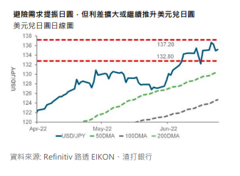 由於担忧全球经济衰退和避险资金流入导致全球利率走低,日本债券与其他成熟市场的债券利差收窄,美元兑日圆跌破关键 135 水平。尽管出现反弹,但随着日本央行与其他央行之间的政策利差继续扩大,日圆的涨势恐无法延续。美元兑日圆的阻力位在 137.20.