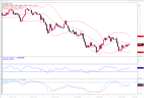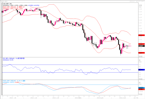 周一,全球股市上涨提振英镑升至1.2330,1.2330是6月17日以来的最高水平。英镑自上周五亚市开盘后震荡走高,欧盘时段反弹至第一阻力承压下行,日线报收上下影线小阳线,目前上方阻力犹存,同时下方支撑保持,短线的多空争夺尚未结束。结合4小时图来看,布林中轨走平,MACD零轴附近运行,下方首要支撑1.2230-40,第二支撑1.2190,上方阻力1.2320,1.2370-80。上方只有突破1.24之上,方有望进一步扩展开反弹的空间。