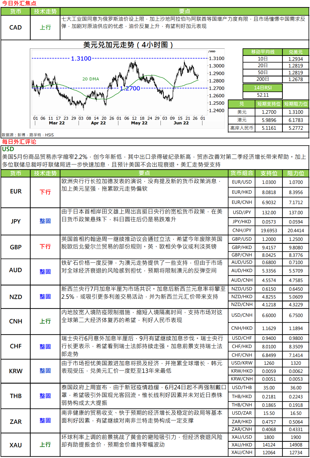 · 美國 4 月標準普爾 CoreLogic/Case-Schiller 20 大城市房屋價格指數按年上升 21.2%,續創歷史新高,市場原先預期為上升 21%,前值升幅則略為下修至 21.1%.當中,坦帕、邁阿密及鳳凰城等城市樓價升勢按年升幅分別為 35.8%、33.3%及 31.3%,數據反映當地房產市場依然熾熱。不過,隨著按揭利率大幅攀升,以及房屋銷售量大跌等因素,市場估計未來樓價升幅或會大幅收斂。