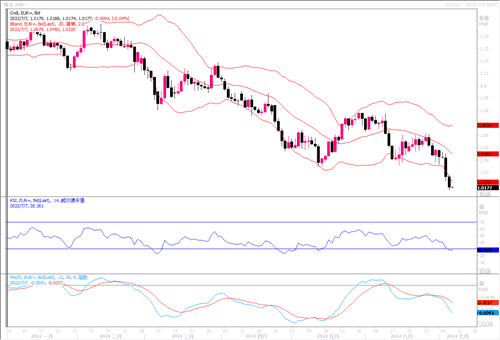周三外汇市场上,欧元/美元下跌趋势势头增强,周三进一步下跌0.85%,跌至20年新低1.0161。,欧洲天然气危机恶化加剧欧元疲态,而欧洲央行与美联储政策分歧更是给欧元带来压力。周三公布的美联储6月货币政策会议记录显示:6月份会议的与会者“一致”认为,通胀前景已经恶化,有理由大幅加息0.75个百分点。看来7月份的议息会议上,美联储继续加息75个基点的概率仍旧很大。而昨日欧洲央行针对加息也是老调重弹,因此市场对于欧洲央行的加息预期的期盼度不高,目前看7月即便加息是幅度也不会太大。在有乌克兰危机暴露出很多问题,已经资本出逃,和经济复苏缓慢,都是使得让欧元是小幅反弹而后大步下跌的走势。技术图形上,小时图严重超卖,有进入调整的需求,上方阻力水平暂时在1.0240-1.0270区域,进一步阻力在1.0350-1.0370。若欧元继续下滑,则平价仍旧会是测试的目标。
