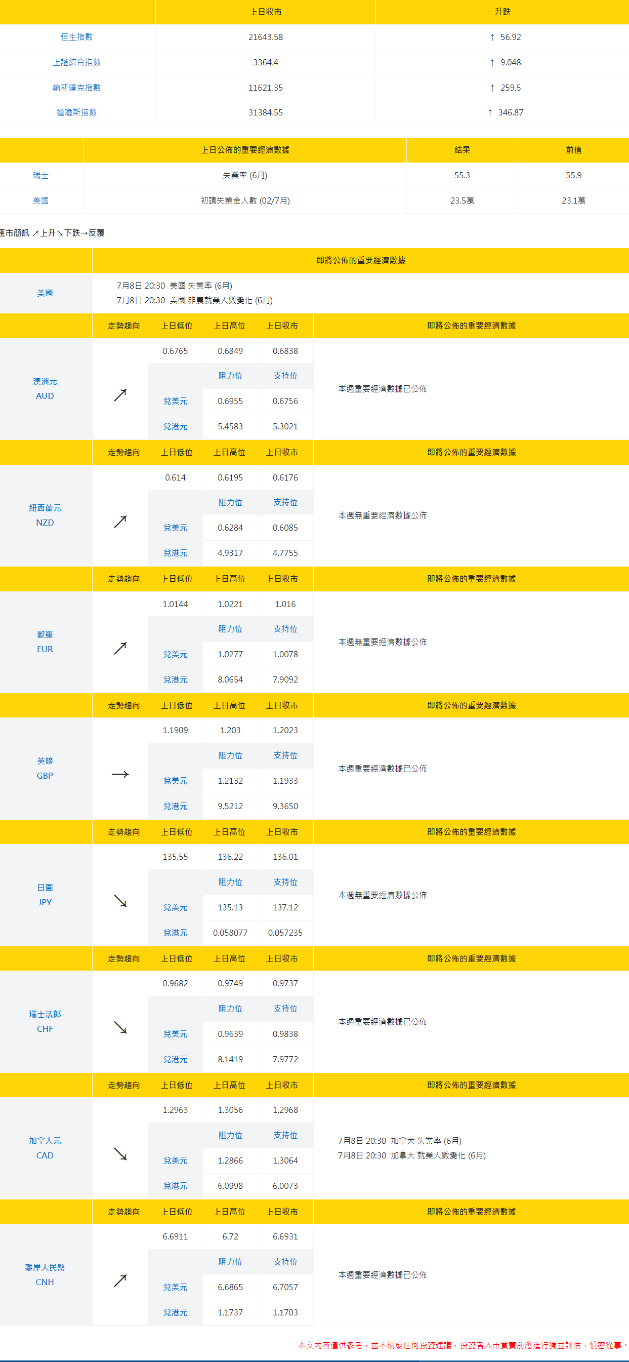 大丰银行:今日外汇走势分析和投资策略(2022年7月8日)