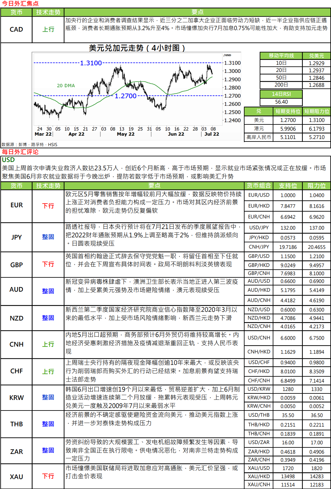 · 英国首相约翰逊在面对超过 50 多名内阁成员及高级官员辞职施压後,周四 (7 日) 终於宣布辞任保守党党魁一职,但将留任首相直至选出新接班人,相关时间表最快将於下周公布,这意味着英国於六年内将出现第四位首相。受约翰逊辞任消息带动,市场憧憬新任党魁能再次团结保守党,刺激英镑汇价重上 1.20 美元水平。不过,由於约翰逊所留下,英国脱欧後所面对的一系列政治、贸易及经济问题异常复杂,并非单靠首相更替便能解决,料英镑短期反弹空间或受限。